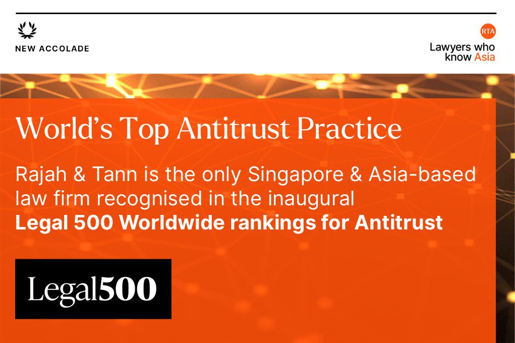 Rajah & Tann Asia’s Regional Competition & Antitrust Team recognised as the only Singapore and Asia-based law firm in the Legal 500 worldwide rankings for Antitrust